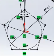 齿轮内腔是一个规则的正五边形,绘制时需要注意: