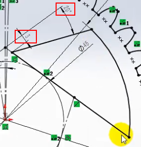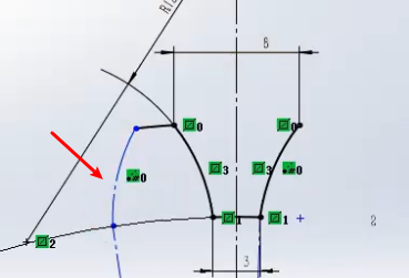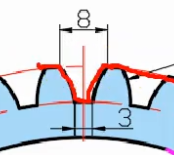 修剪成型:对这两段圆弧进行修剪,得到一个完整的齿形单元