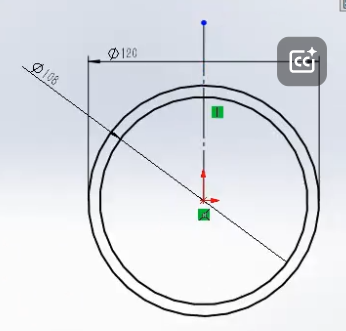 经验之谈:辅助圆直径选择有讲究。φ120作为外齿参考,φ96作为内腔参考,这两个尺寸不是随意定的,而是根据最终图形尺寸反推得出的临时参考。在实际项目中,这种"由果导因"的绘图思路很实用。